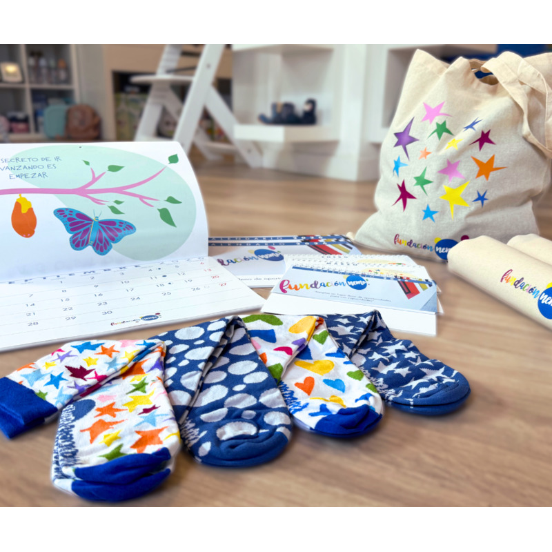 Calcetines solidarios de Fundación Nemo, diseñados para unir comodidad, originalidad y compromiso social en una prenda esencial del día a día. Estos calcetines cuentan con estampados originales y únicos inspirados en el Nemomundo, el universo creativo propio de la fundación, donde cada diseño transmite valores de inclusión, diversidad y respeto.