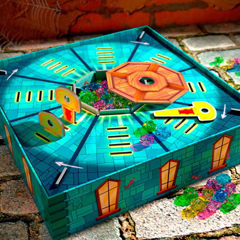 Los jugadores exploran un castillo en busca de tesoros escondidos. El objetivo es introducir correctamente las llaves doradas en el tablero interactivo para abrir la cámara del tesoro y ganar piedras preciosas.