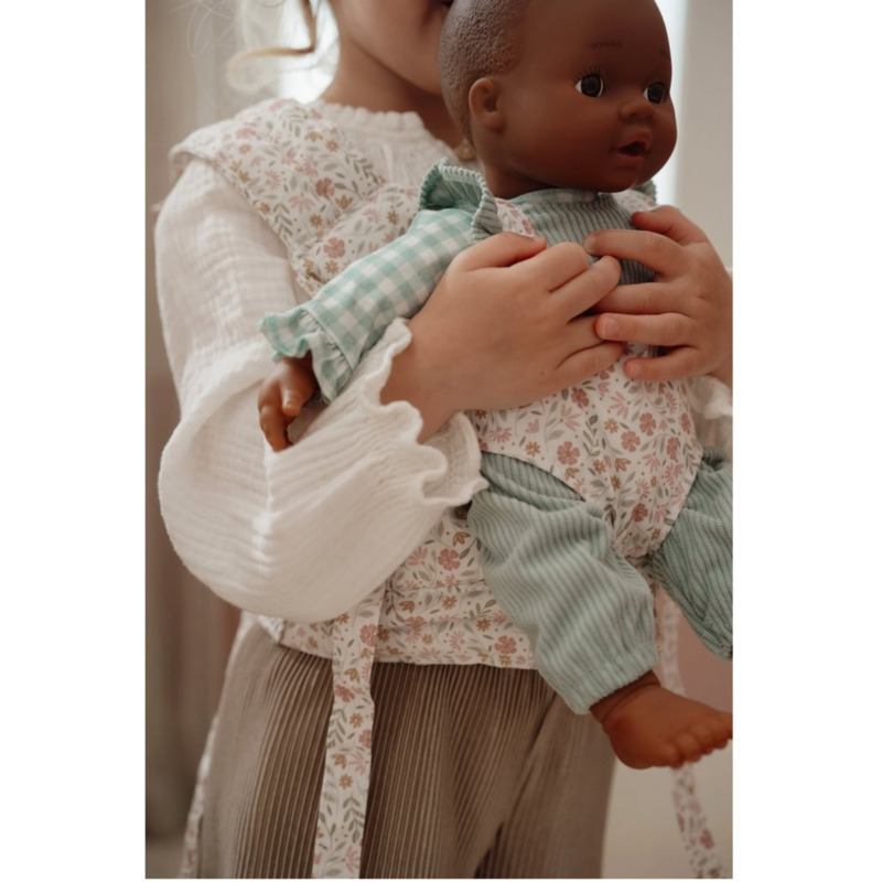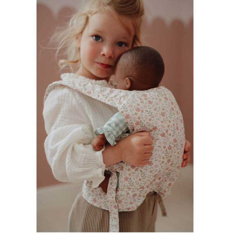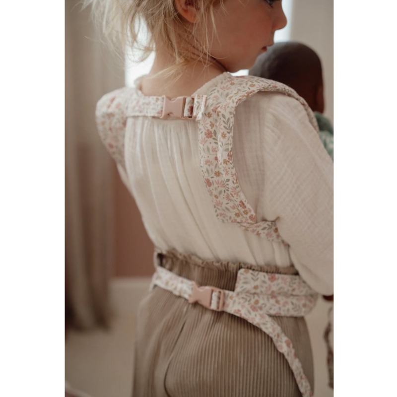 Cuenta con correas de hombro ajustables y acolchadas, junto con un resistente cinturón lumbar, que garantizan que la muñeca vaya sentada de forma segura y cómoda. Permite llevarla cerca del cuerpo o mirando hacia delante, adaptándose a las preferencias de cada niño o niña. Su delicado estampado Soft Flowers aporta un estilo dulce y elegante, característico de Little Dutch.