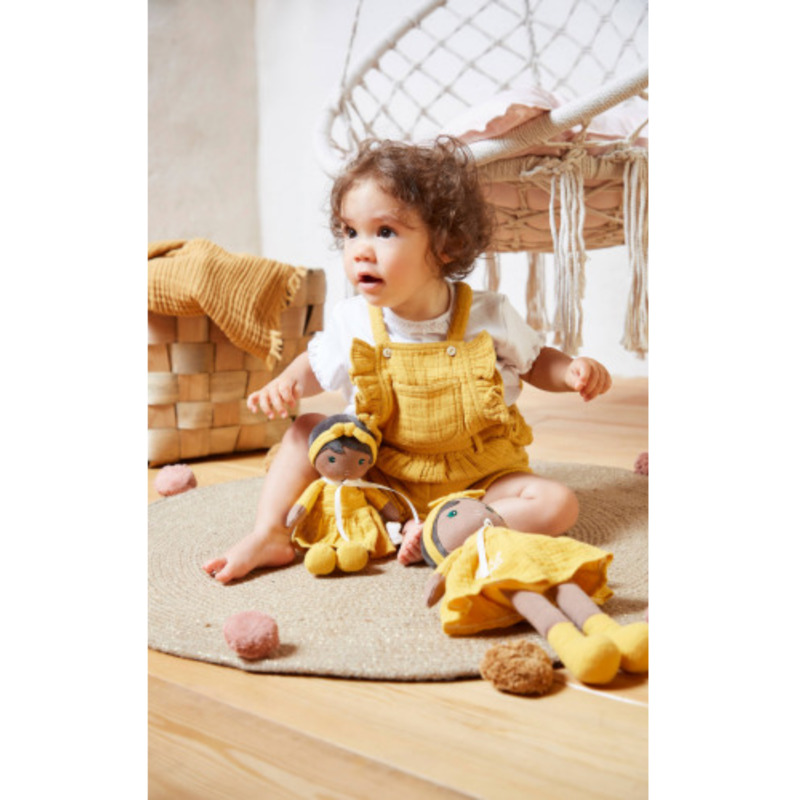 Su vestido amplio y sus pequeñas botas están pensados para acompañar a Naomie en todas sus aventuras imaginarias. De textura suave y tamaño perfecto para las manos más pequeñas, es ideal para abrazar, jugar o acompañar al bebé en cualquier lugar.