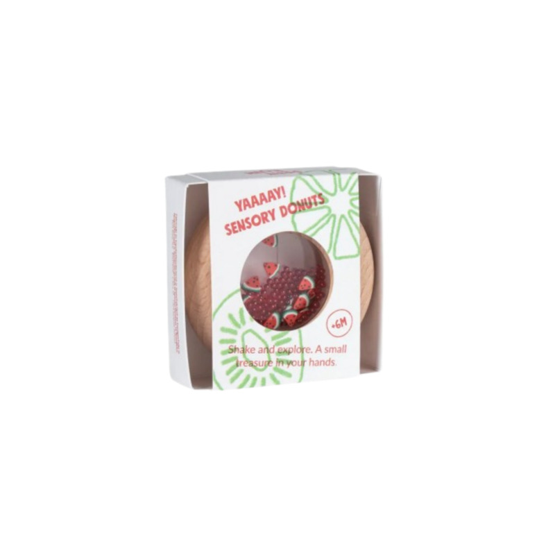Nuestro nuevo juguete sensorial encantará a los pequeños más golosos. Es un sonajero de madera con forma de donut, ideal para que sus manos lo manipulen con comodidad.