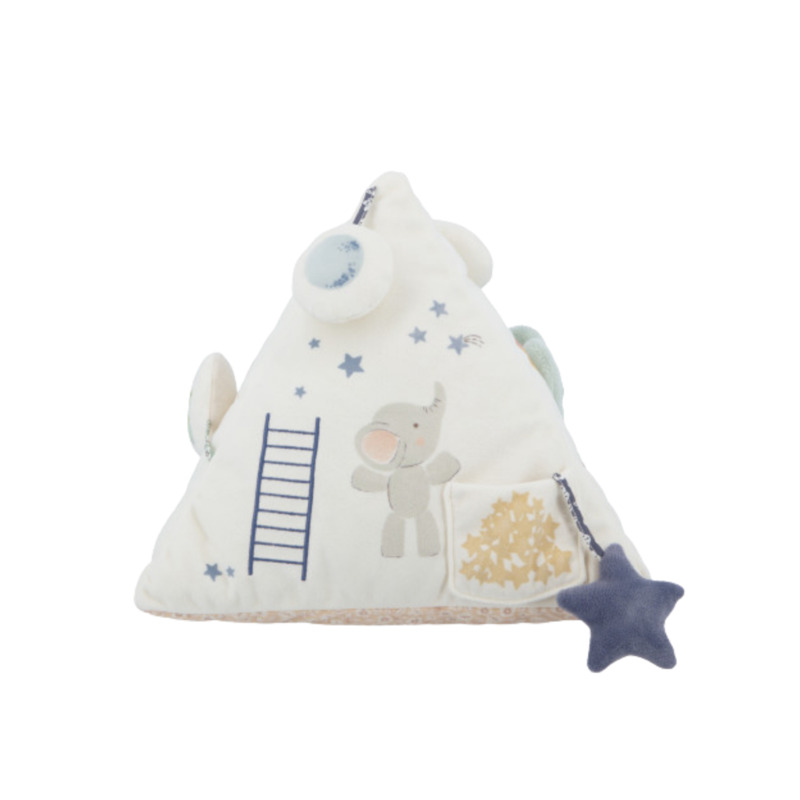 La pirámide de actividades Kaloo es un encantador juguete sensorial con sonido diseñado para estimular los sentidos del bebé y acompañar sus primeros descubrimientos. Con una altura de 25 cm, su textura suave de microterciopelo y sus delicados bordados invitan al tacto y a la exploración.