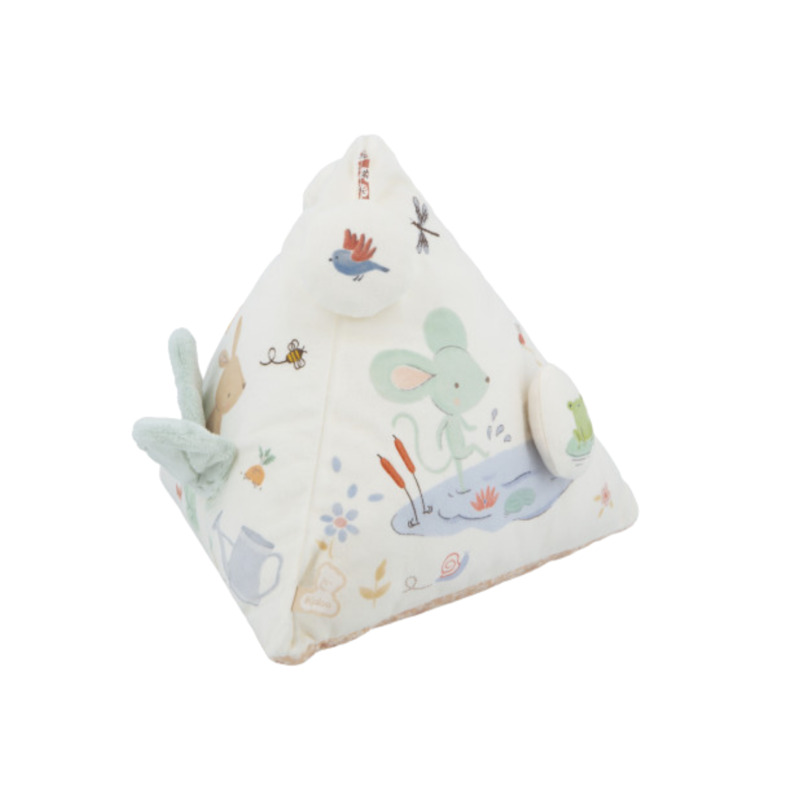 Inspirada en las canciones infantiles clásicas de la colección Petites Chansons —Un conejito, Estrellita, ¿dónde estás? y El ratón verde—, esta pirámide multisensorial fomenta la coordinación, la audición y la curiosidad del bebé mediante diferentes elementos para tocar, sacudir, oír y rascar.