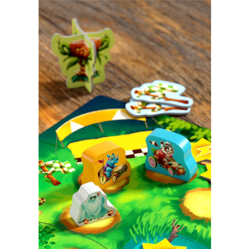 ¡Empieza la loca carrera de autos a través de la jungla! En este emocionante juego de mesa para niños a partir de 6 años, los jugadores compiten por ser el más rápido en completar 3 vueltas al circuito. Pero cuidado… los fantasmas, dados y ¡hasta la bocina! pueden cambiar el rumbo de la carrera en cualquier momento.