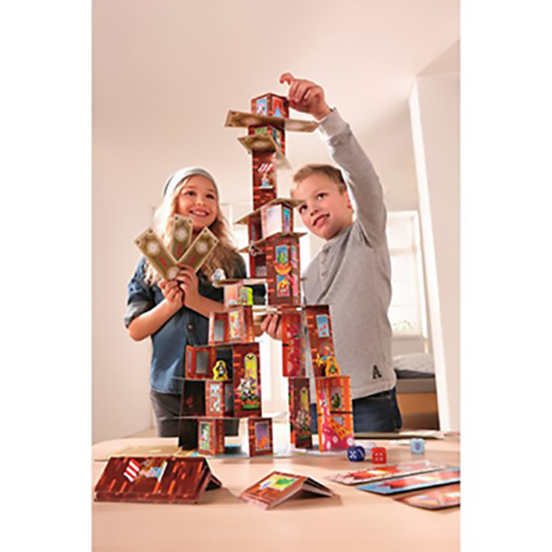 En este divertido juego de construcción y estrategia, Rhino Hero y sus amigos se enfrentan en batallas épicas mientras construyen un rascacielos tambaleante. Los jugadores deberán usar habilidad para colocar las cartas sin que el edificio colapse y evitar que los traviesos monos araña desestabilicen su jugada.